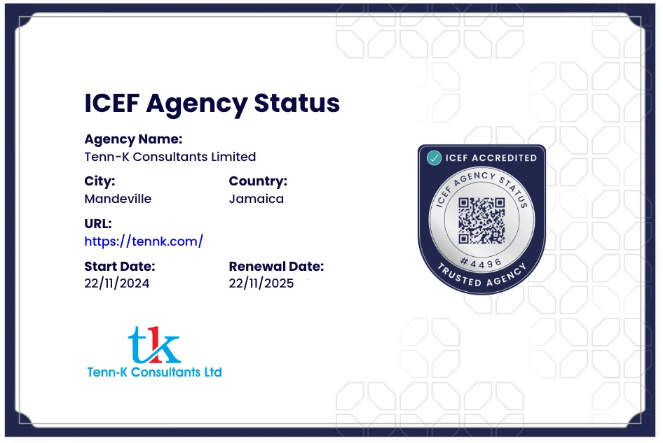 At Tenn-K, we are proud to hold ICEF agency status every year since 2018, a globally recognized certification that ensures the highest standards of professionalism, transparency, and expertise in international education consulting. Our licensure signifies our commitment to providing students and families with trusted advice and tailored solutions for studying abroad.